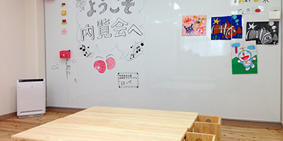 ◆壁一面にホワイトボードを設置、みんなの創造力をかきたてます。